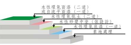 2、水性環(huán)氧底漆:只要不積水或不明顯滲漏就可施工,具有一定的透水氣功能,能增強素地強度及增加涂層對素地的附著力
